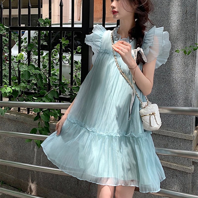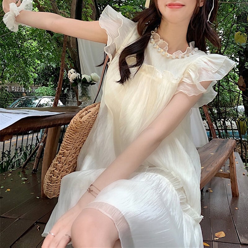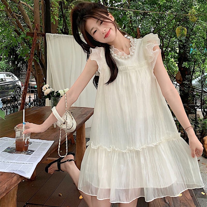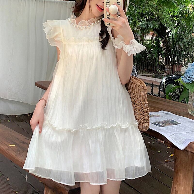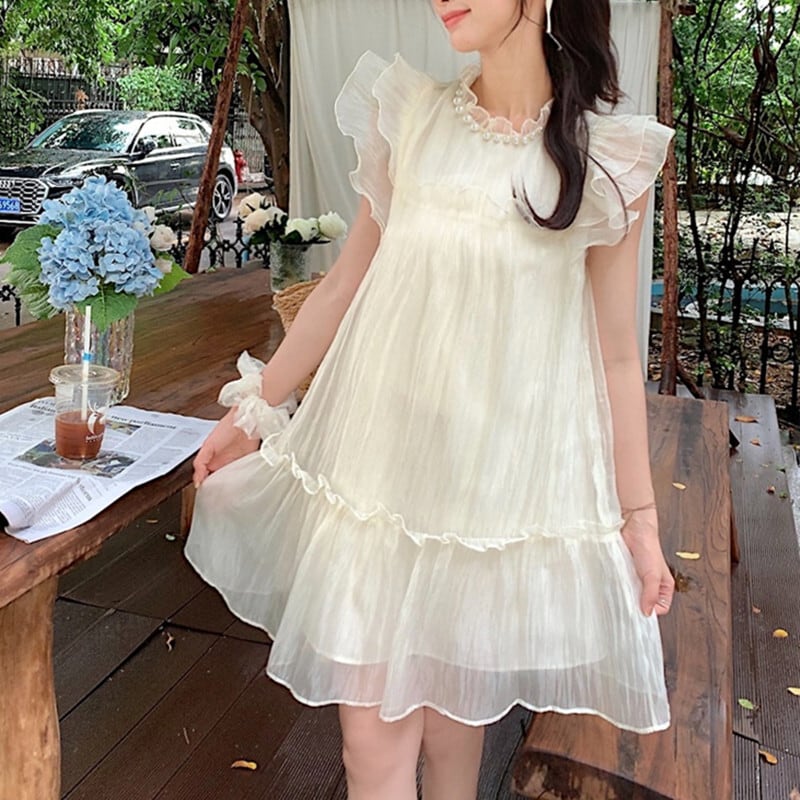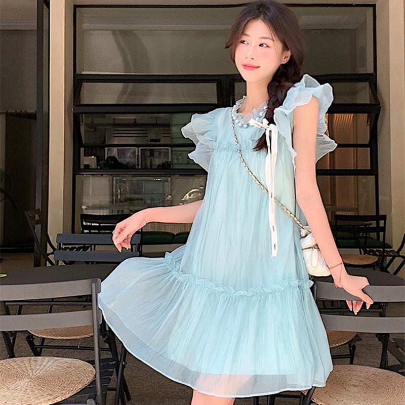 ワンピース スウィート カジュアル 清新 ペプラム ホワイト グリーン S M L