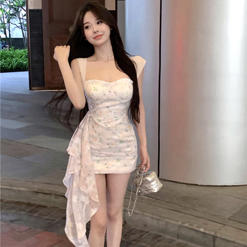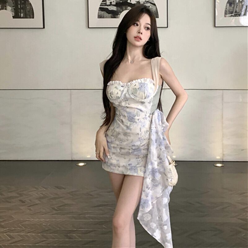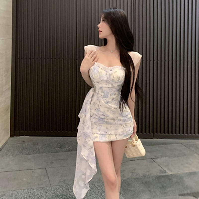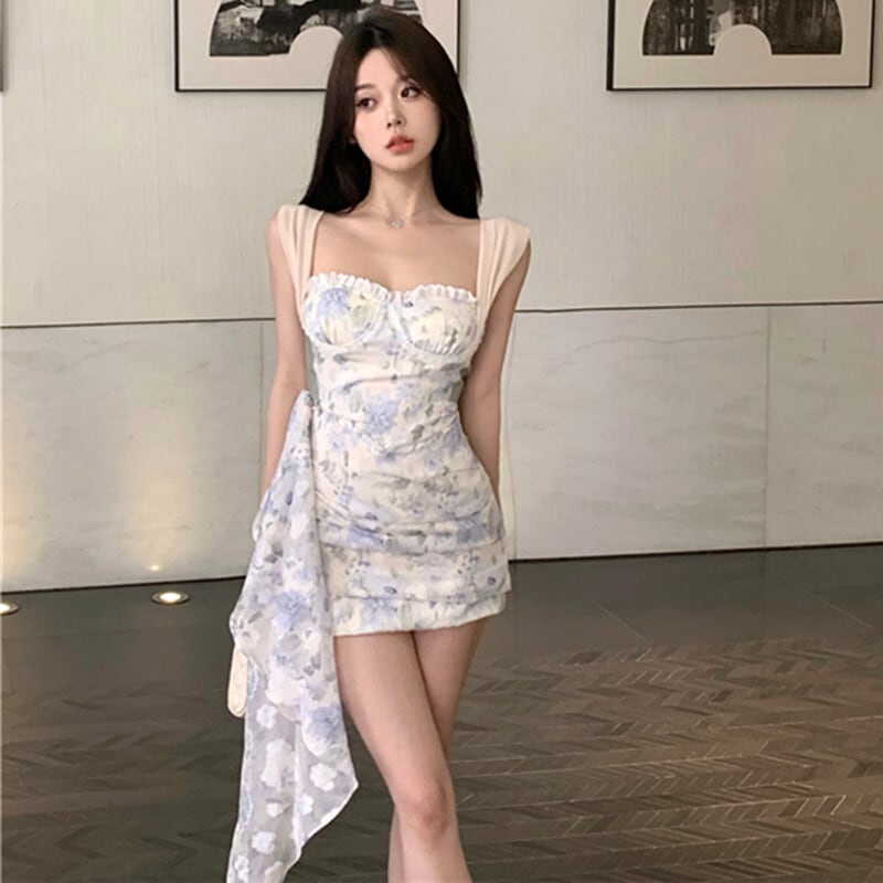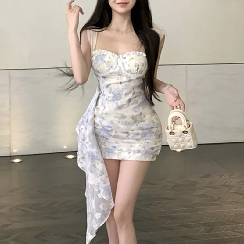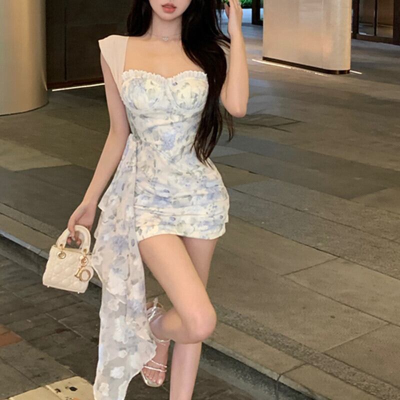ワンピース セクシー 花柄 ファッション 美人度アップ ブルー ピンク S M