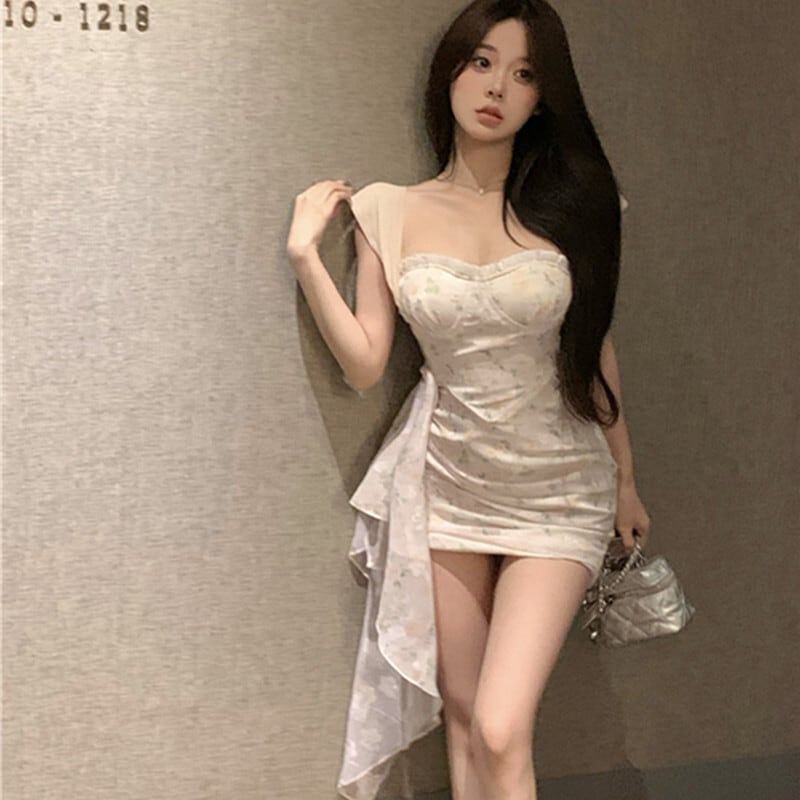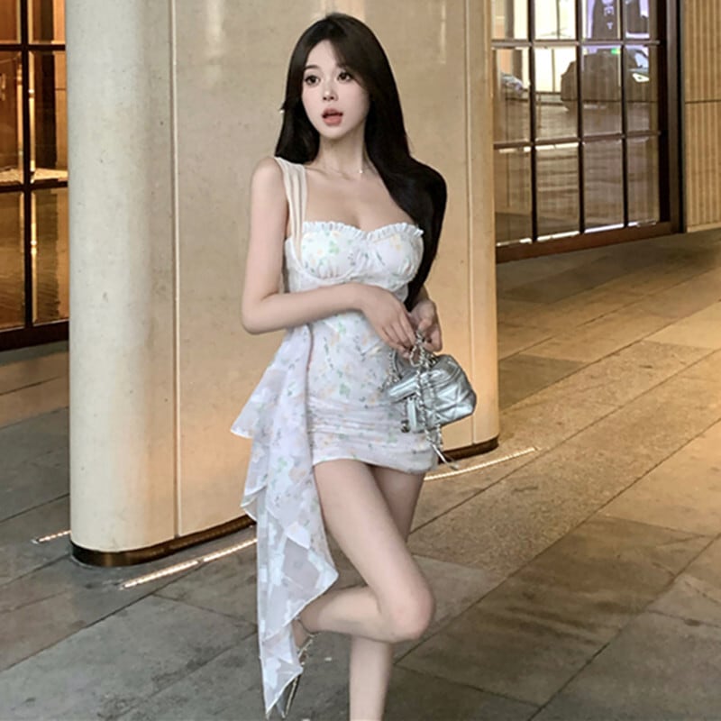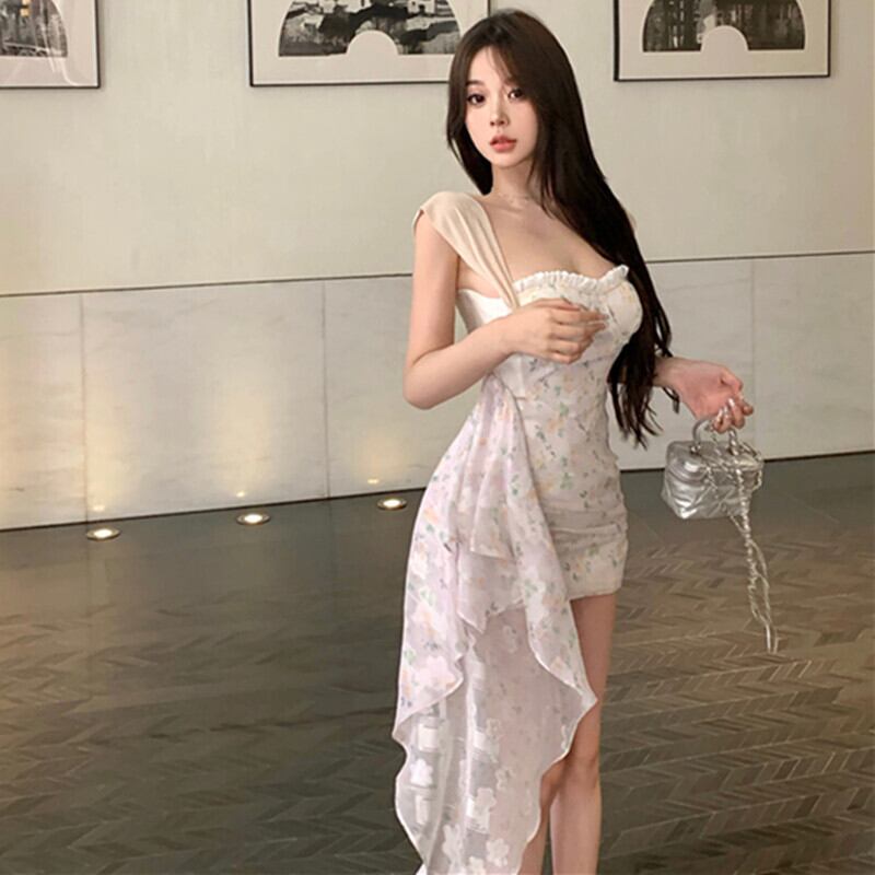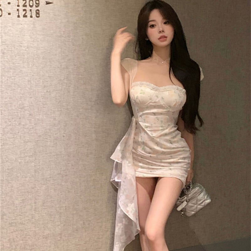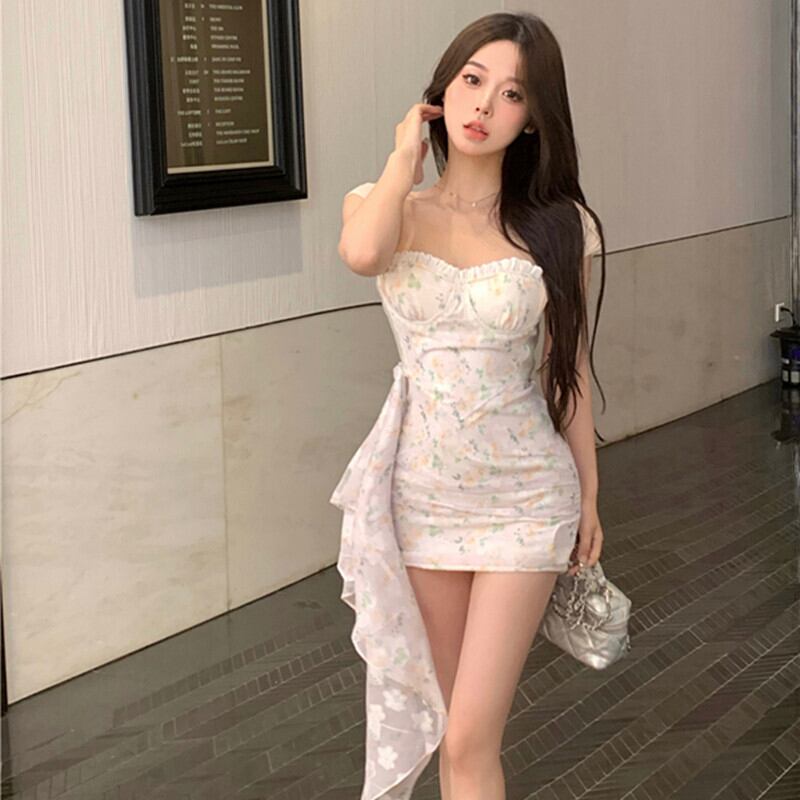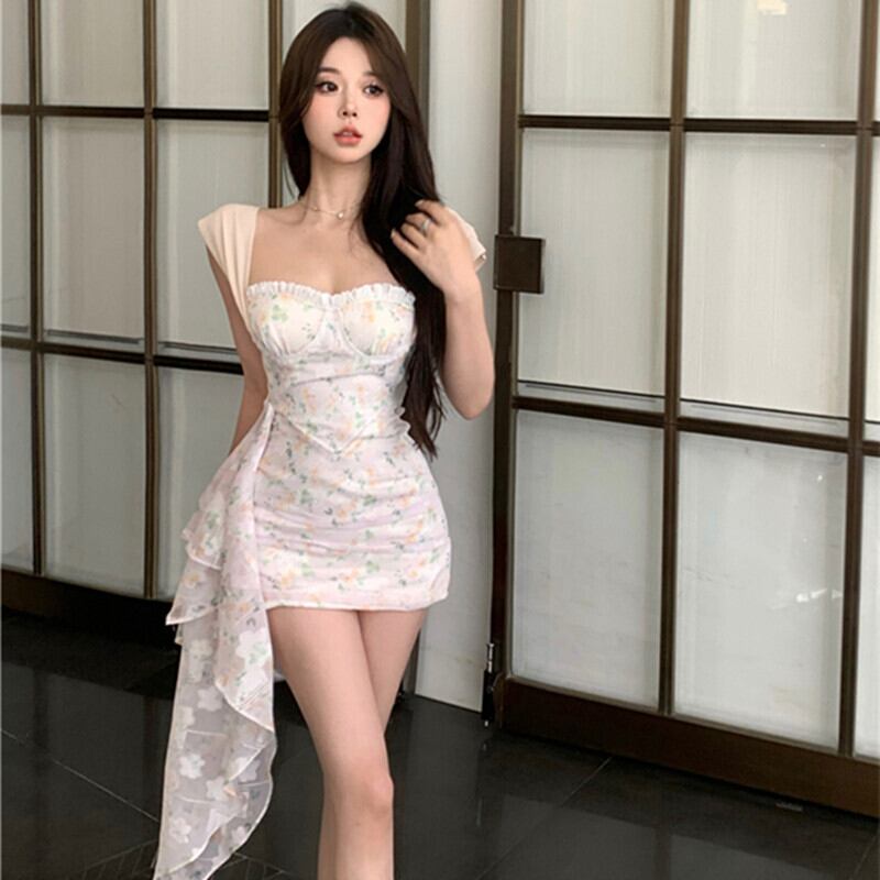 ワンピース セクシー 花柄 ファッション 美人度アップ ブルー ピンク S M