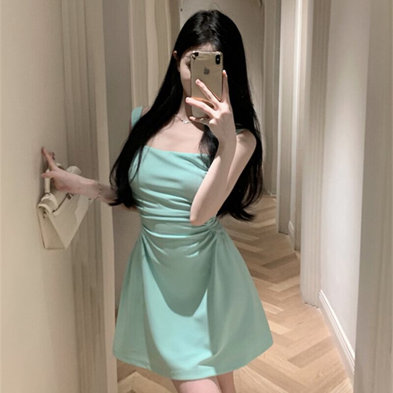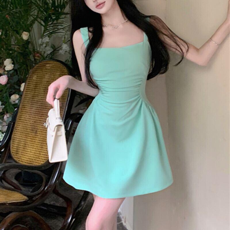 ワンピース セクシー Aライン ノースリーブ グリーン ホワイト XS S M L XL