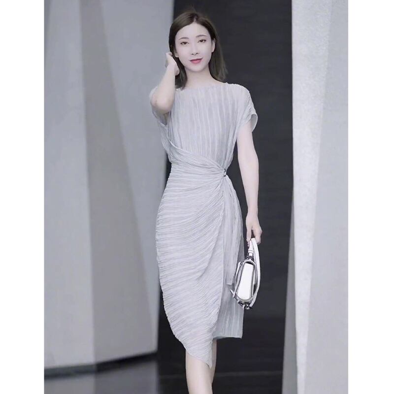 ワンピース 好感度UP OL/通勤 シンプル 高品質 高級感 シフォン グレー S M L XL