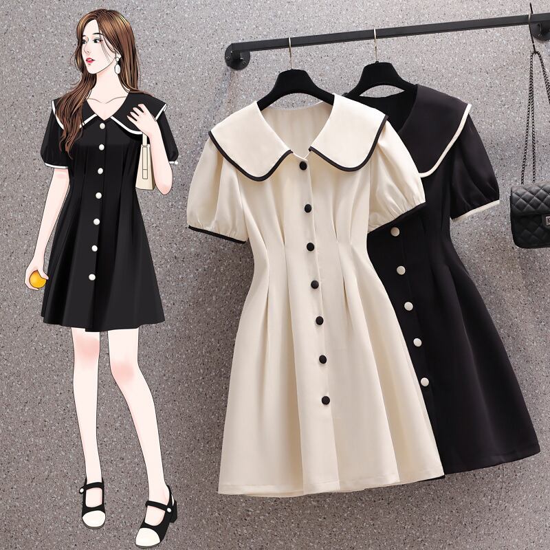 【YOYOシリーズ】ワンピース OL/通勤 Aライン 折り襟 大きいサイズ ブラック ベージュ M L XL 2XL 3XL 4XL