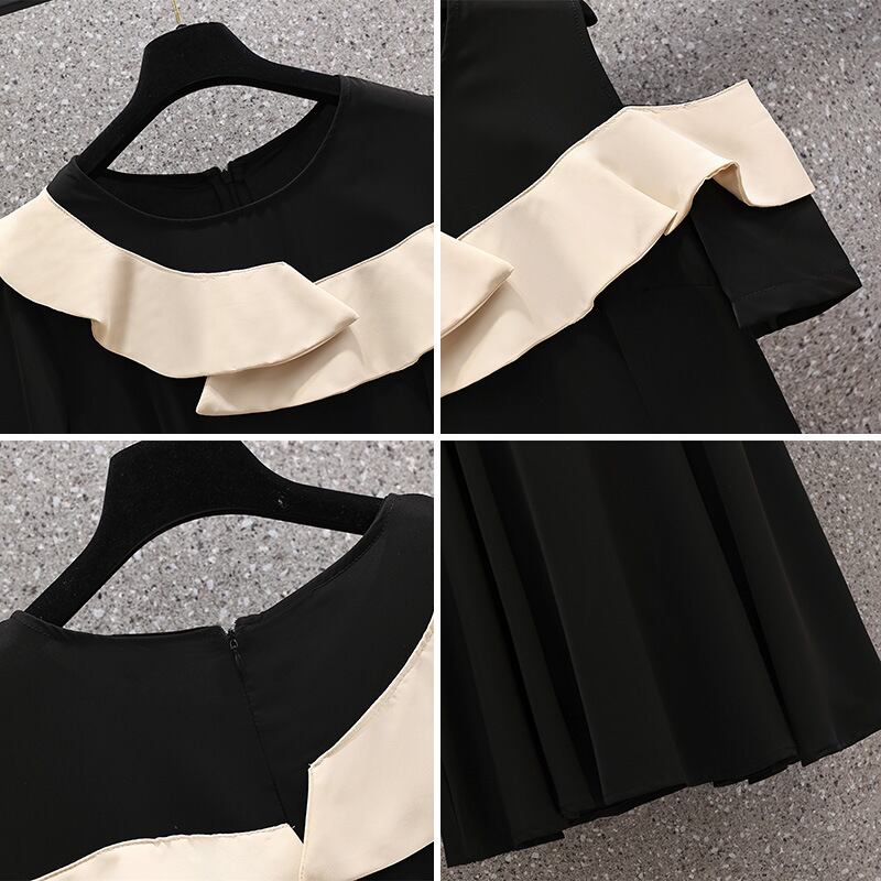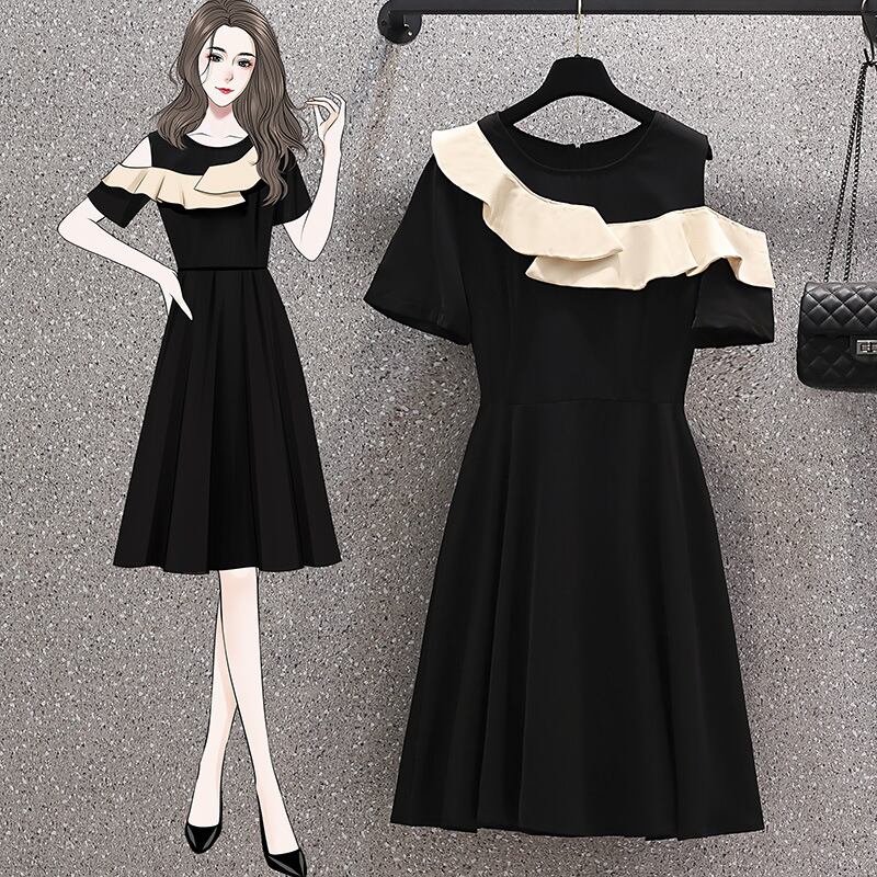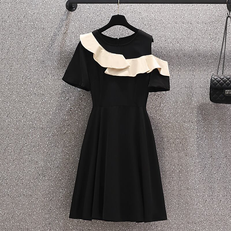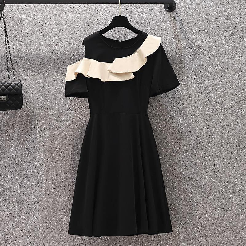 【YOYOシリーズ】ワンピース OL/通勤 Aライン パプラム 肩見せ 大きいサイズ ブラック M L XL 2XL 3XL 4XL