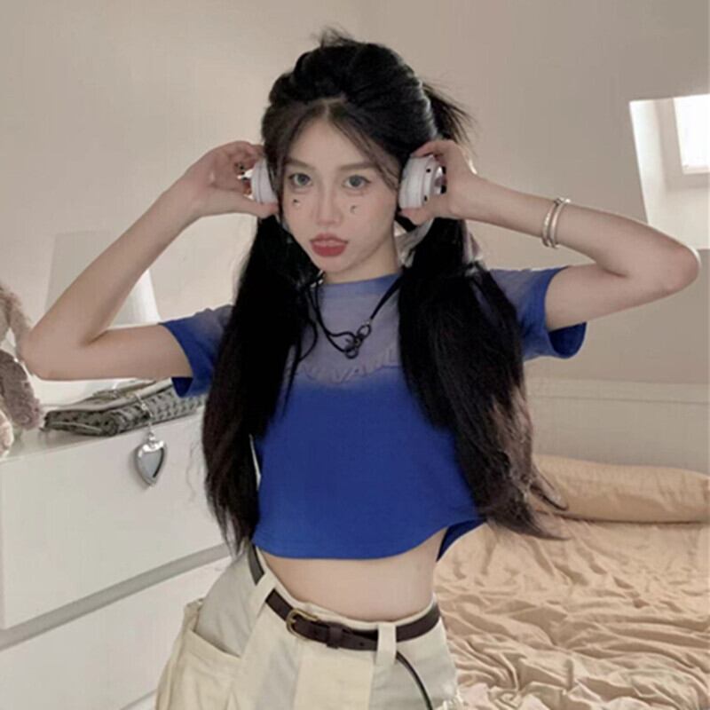 トップス Tシャツ アルファベット カジュアル 半袖 ブルー ピンク S M L