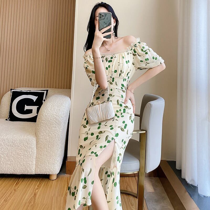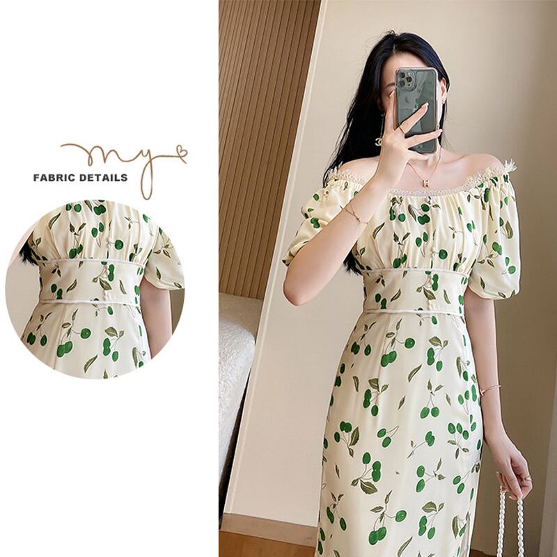 【Aivimoシリーズ】ワンピース スウィート チェリー ボートネック パプラム ライトイエロー 大きいサイズ S M L XL 2XL
