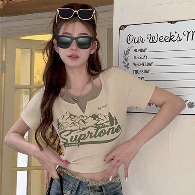 トップス Tシャツ ファッション 重ね着風 アルファベット カジュアル 半袖 S M L