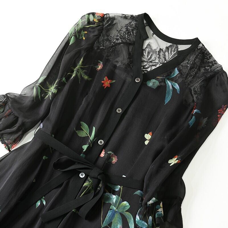 ワンピース 綺麗め OL/通勤 レース Vネック 大きいサイズ ブラック L XL 2XL 3XL 4XL