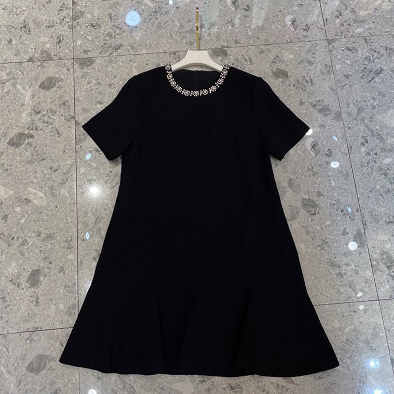 ワンピース 洗練される OL/通勤 ラインストーン Aライン 大きいサイズ ブラック XL 2XL 3XL 4XL