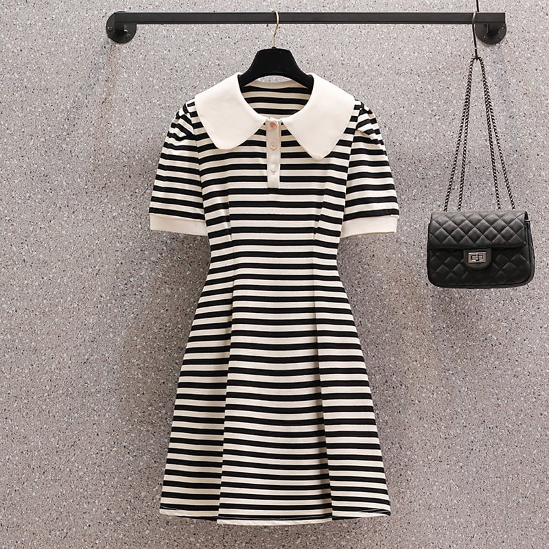【YOYOシリーズ】ワンピース OL/通勤 Aライン ボーダー 白黒ストライプ柄 ロング丈&シュート丈 大きいサイズ M L XL 2XL 3XL 4XL