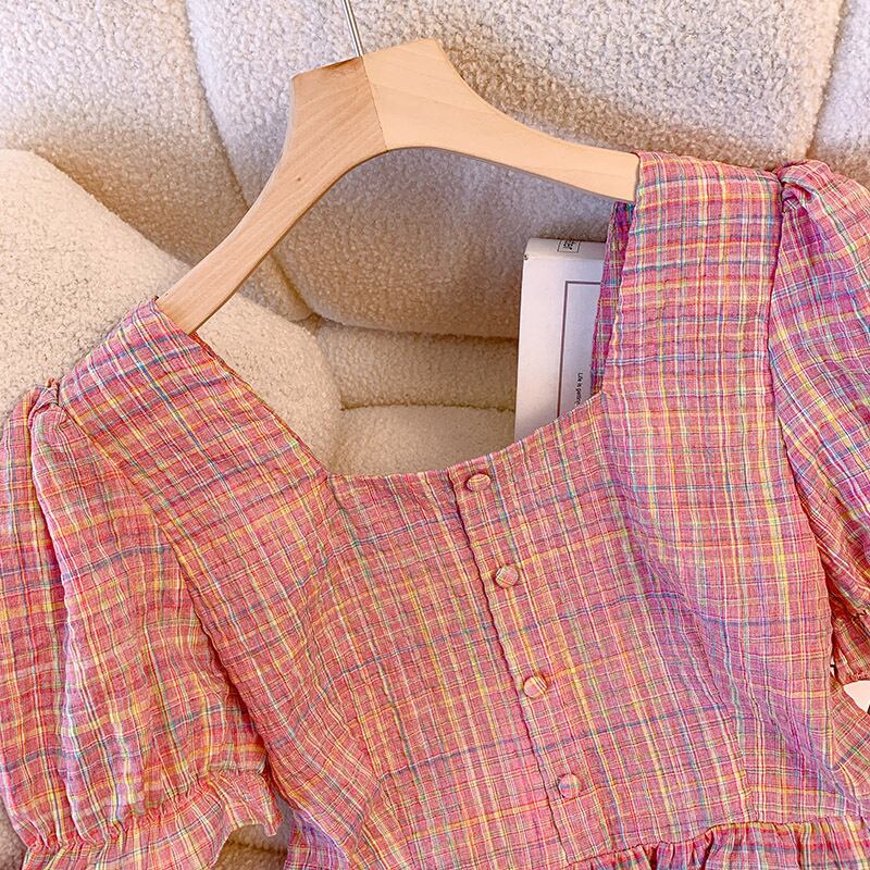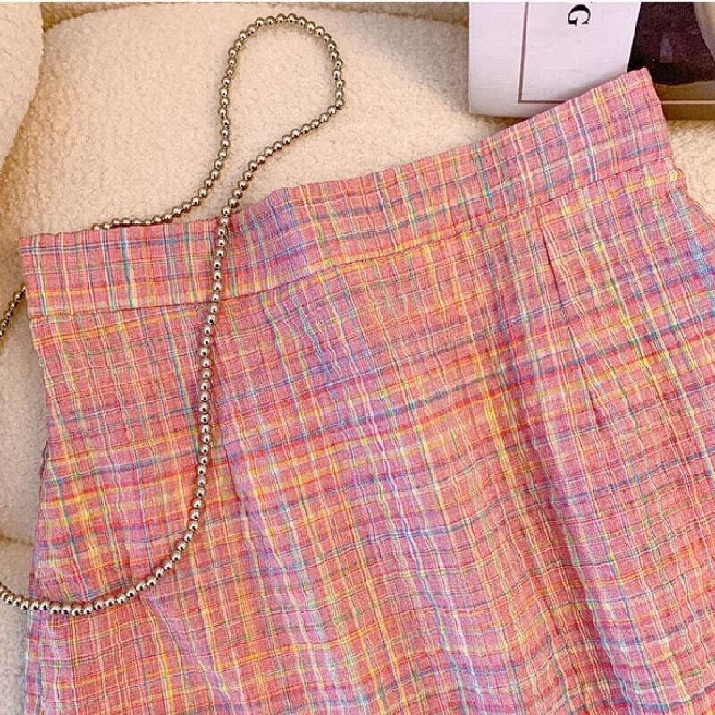 【YOYOシリーズ】セットアップ トップス+スカート ウエストゴム チェック柄 スウィート S M L XL