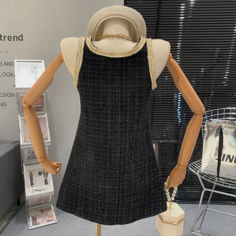 【Airi Styleシリーズ】ワンピース 韓国系 個性 ツイード ノースリーブ Aライン ルーズ ブラック