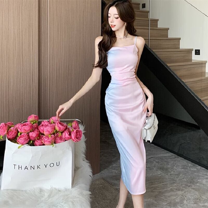 【CHERRYシリーズ】吊りワンピース カラフル 美人度アップ 魅せる ロング丈 S M L