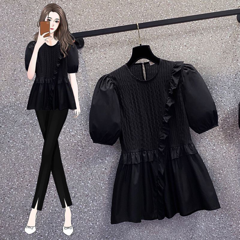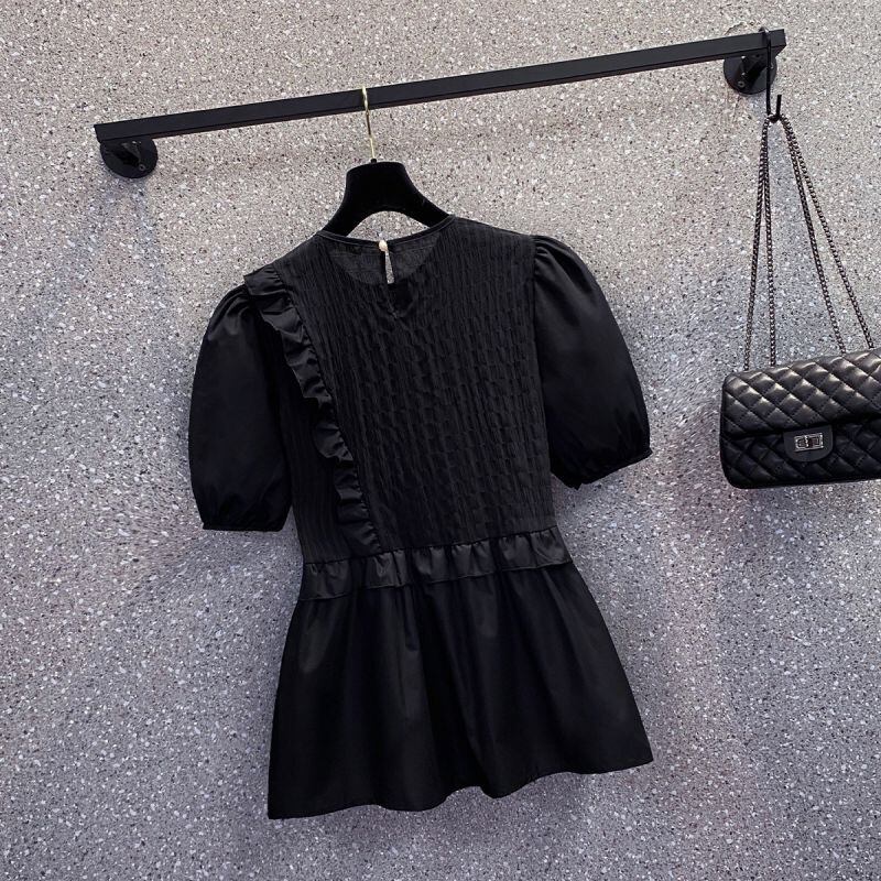 【YOYOシリーズ】トップス シャツ 無地 ルーズ 清新 パプラム 大きいサイズ ブラック L XL 2XL 3XL 4XL
