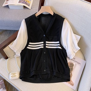 【YOYOシリーズ】トップス ニット Vネック ストライプ柄 大きいサイズ ブラック ホワイト L XL 2XL 3XL 4XL