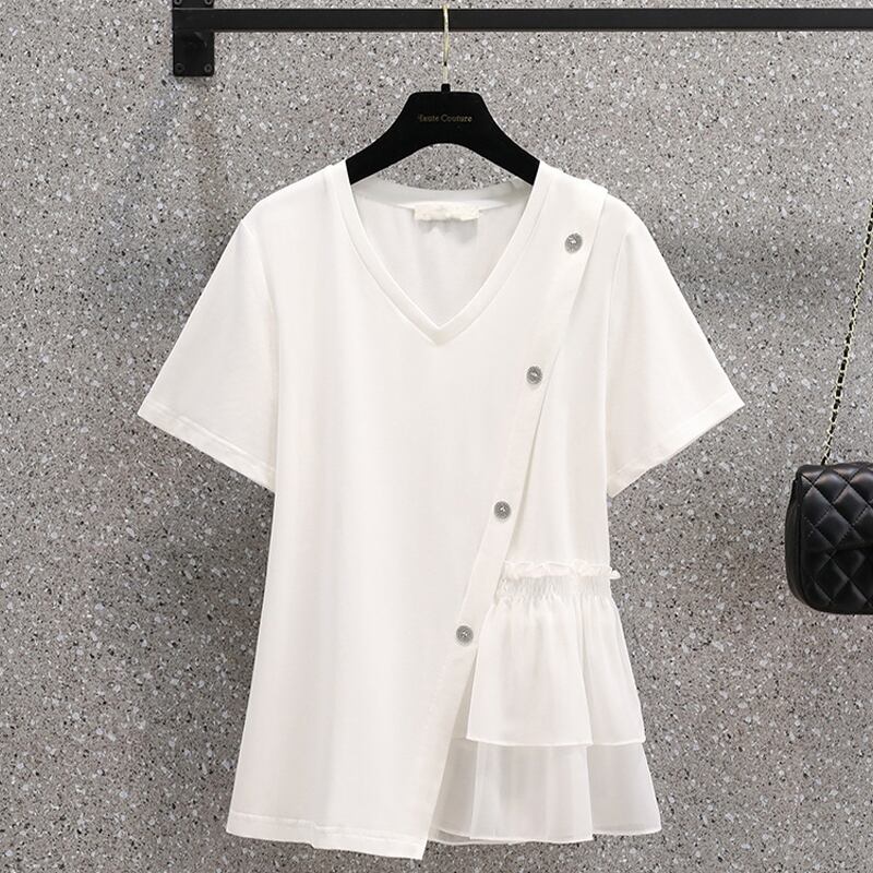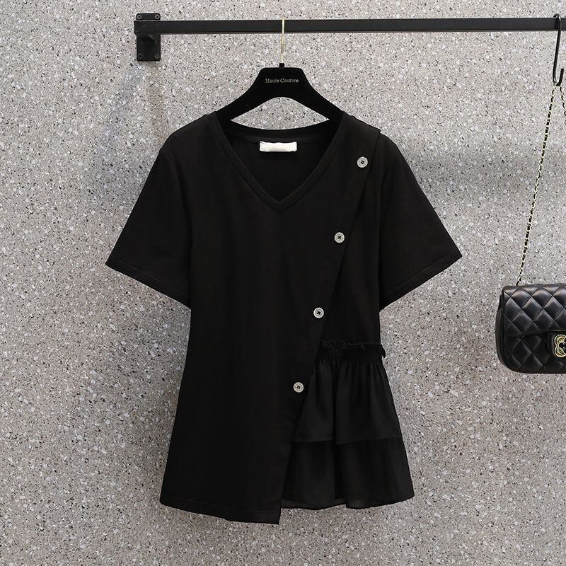 【YOYOシリーズ】トップス Tシャツ Vネック 切り替え 大きいサイズ ブラック ホワイト L XL 2XL 3XL 4XL