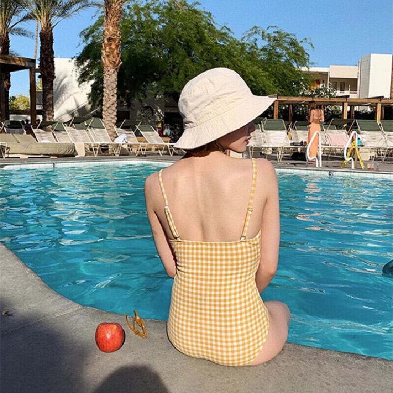 水着 2色展開 チェック柄 温泉 水泳 ブルー イエロー M L XL