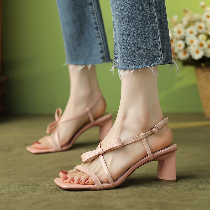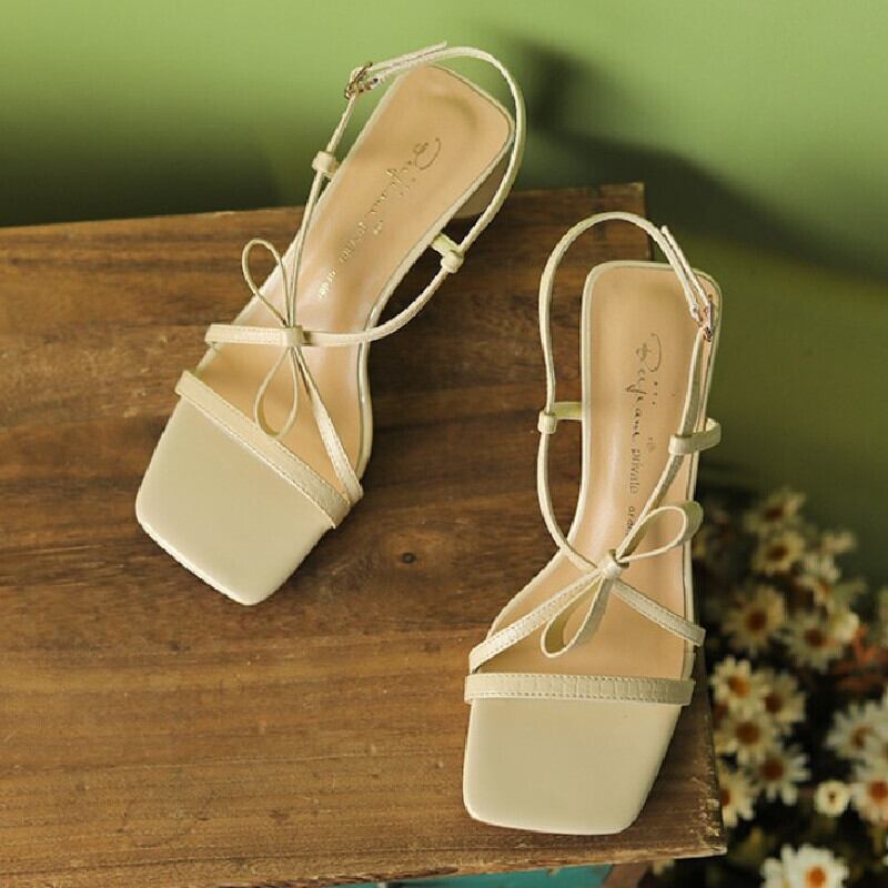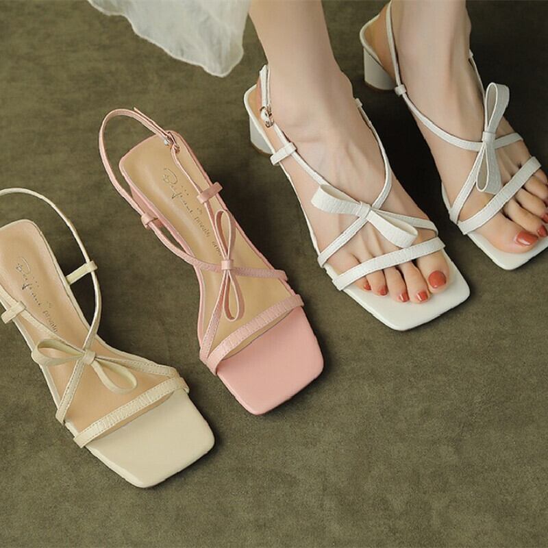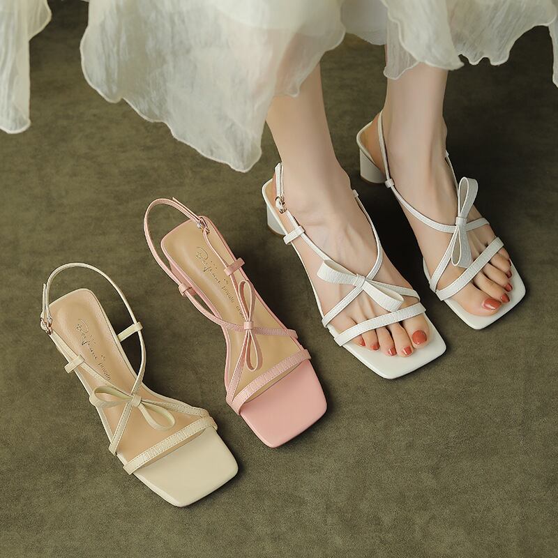 シューズ サンダル 3色展開 蝶結び ホワイト ピンク イエロー 6CM