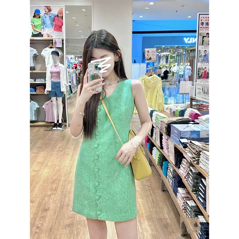 ワンピース 都市ファッション OL/通勤 Vネック ルーズ ノースリーブ グリーン S M