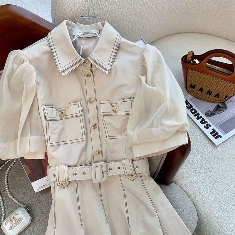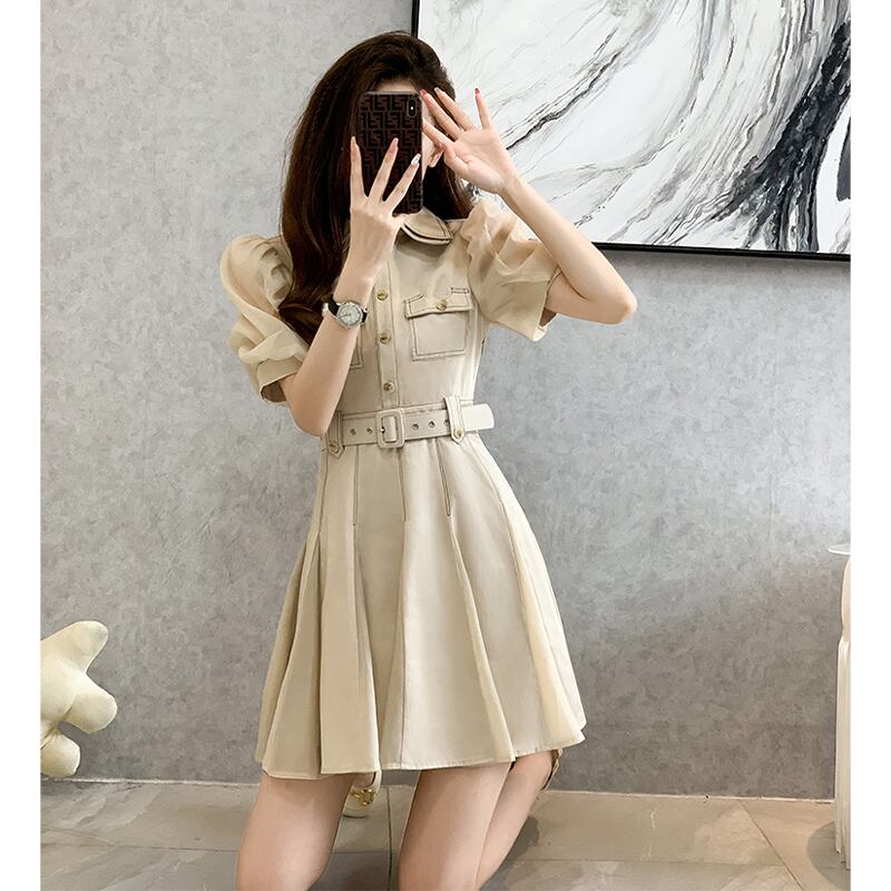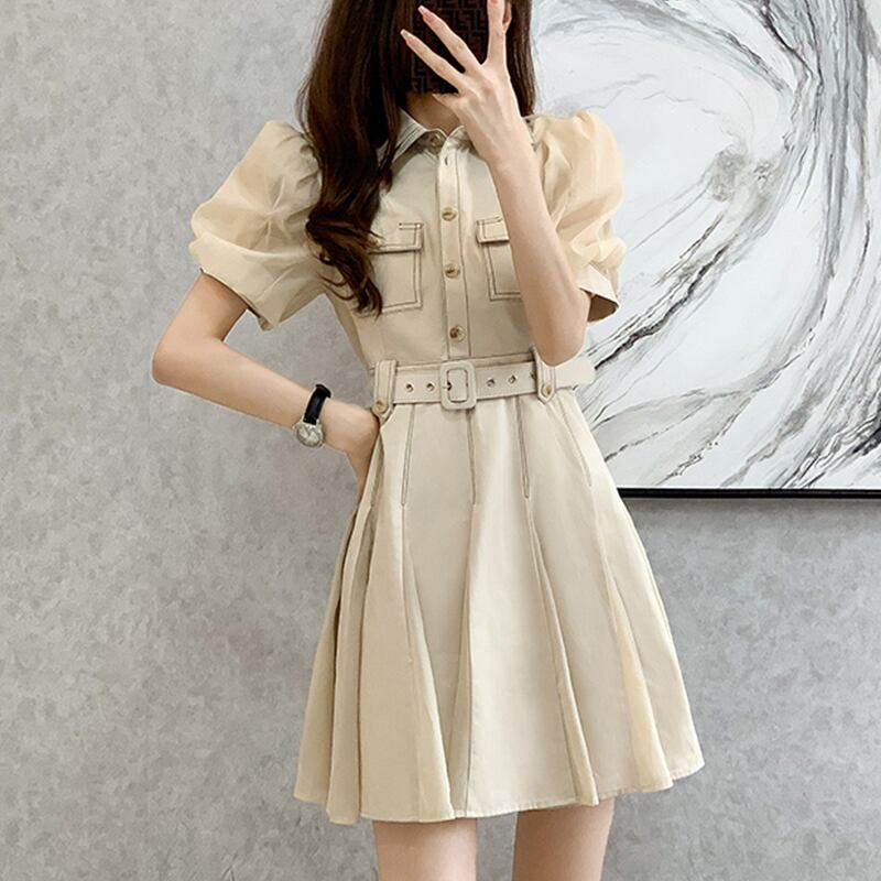 ワンピース ベルト付き 気質UP OL/通勤 Aライン 半袖 大きいサイズ S M L XL 2XL