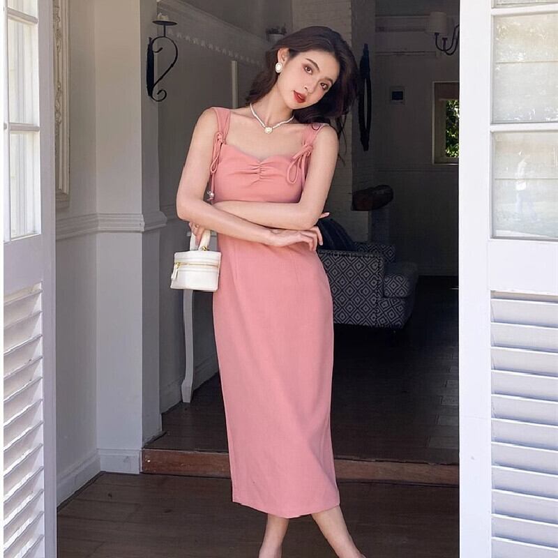 【ELEGANTSSシリーズ】吊りワンピース 2色展開 デート タイトワンピース ピンク ブラック S M L XL