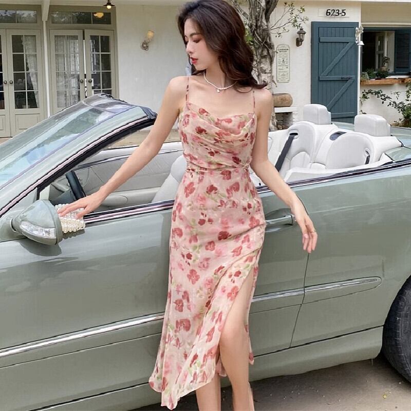 【ELEGANTSSシリーズ】吊りワンピース 花柄 休日 美人度アップ S M L XL