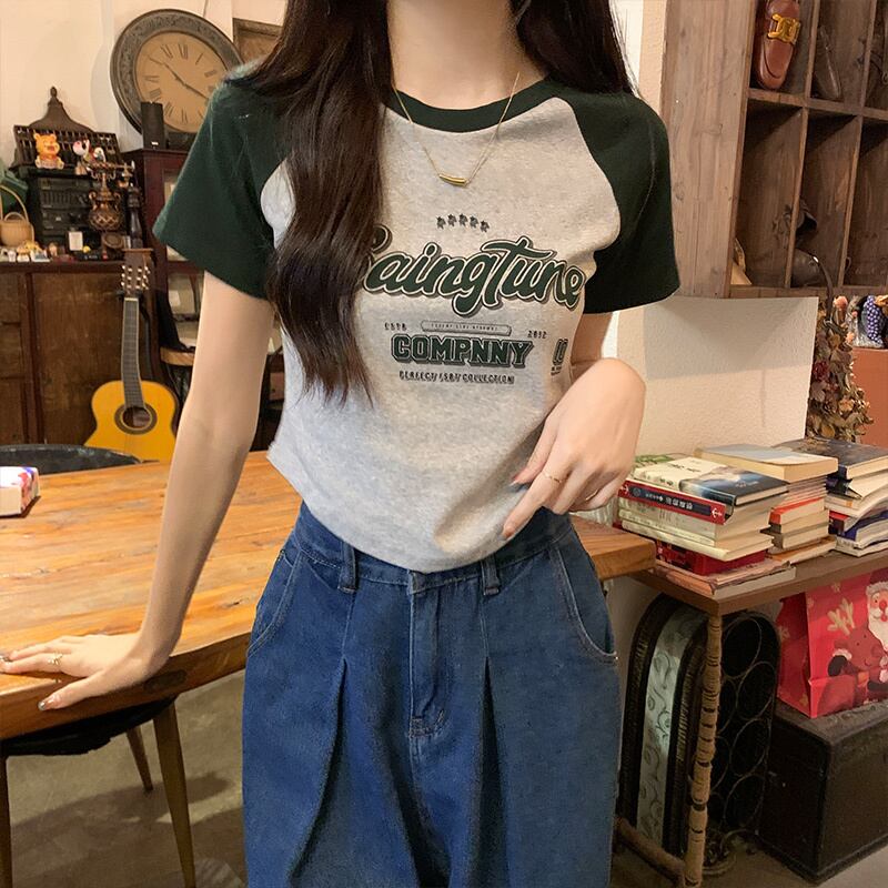 トップス Tシャツ アルファベット ファッション ブラック ブラウン グリーン インディゴ S M L XL