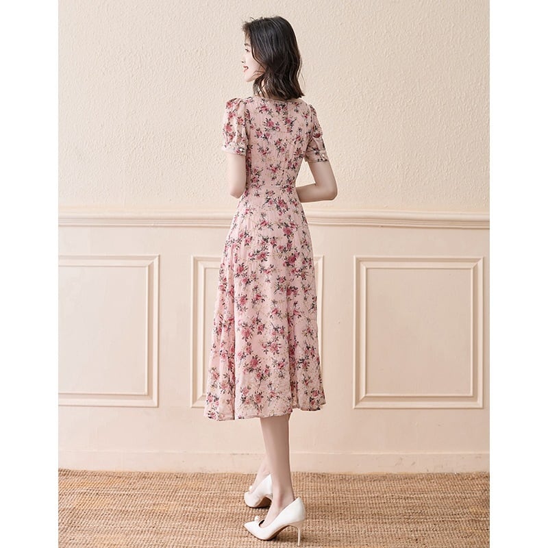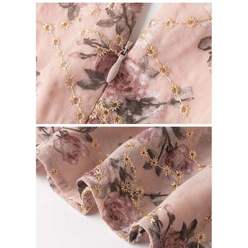 ワンピース 好感度100% 刺繍 花柄 スクエアネック 文芸風 清新 ピンク S M L XL 2XL