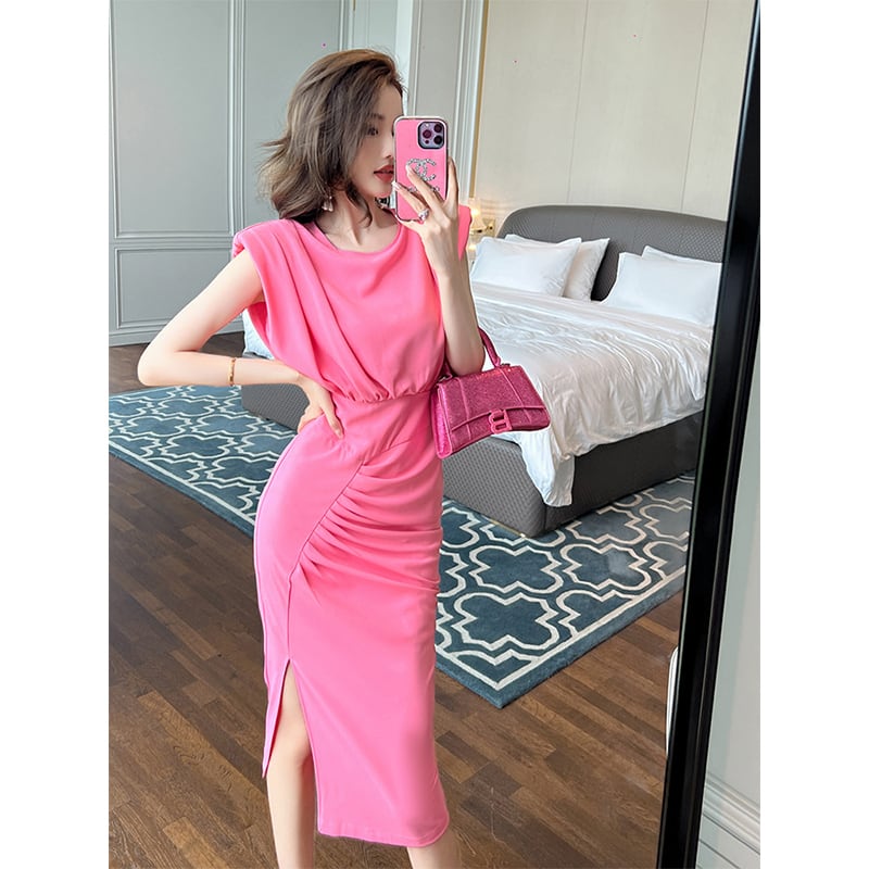 【夕暮薔薇シリーズ】ワンピース 気質UP セクシー OL/通勤 無地 不規則 ピンク S M L XL