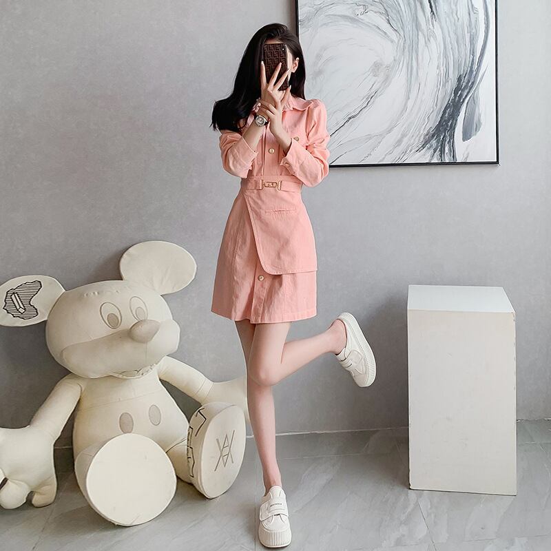 ワンピース トレンド感あふれる 個性 デザイン感 OL/通勤 デニム 不規則 ピンク S M L XL
