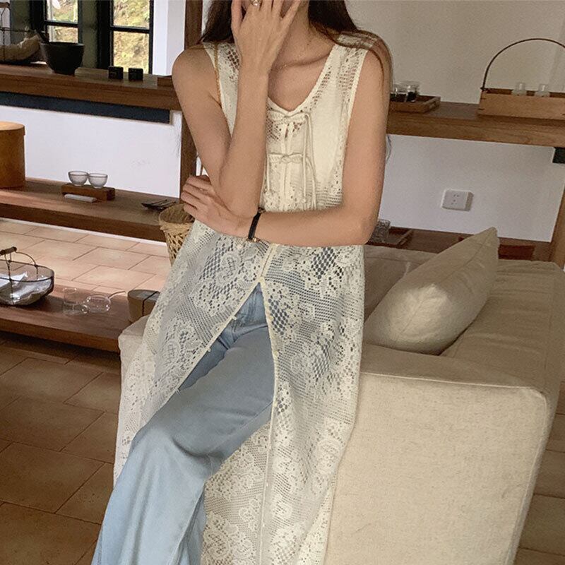 ワンピース かわいい 個性 ボヘミアン風 ロング丈 透かし彫り ホワイト