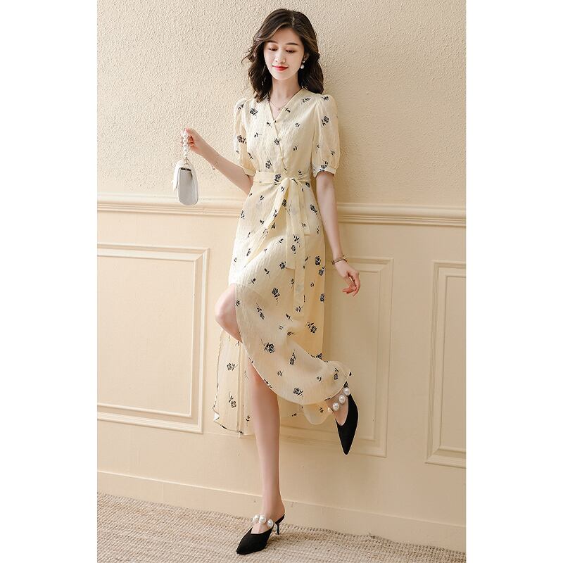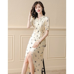 ワンピース ファッション OL/通勤 Vネック シフォン 花柄 ベージュ S M L XL