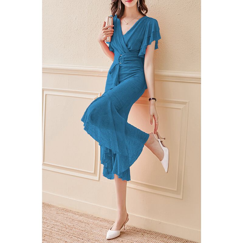 ワンピース 人気精選 エレガント パプラム Vネック 大きいサイズ ばら色 ブルー S M L XL 2XL