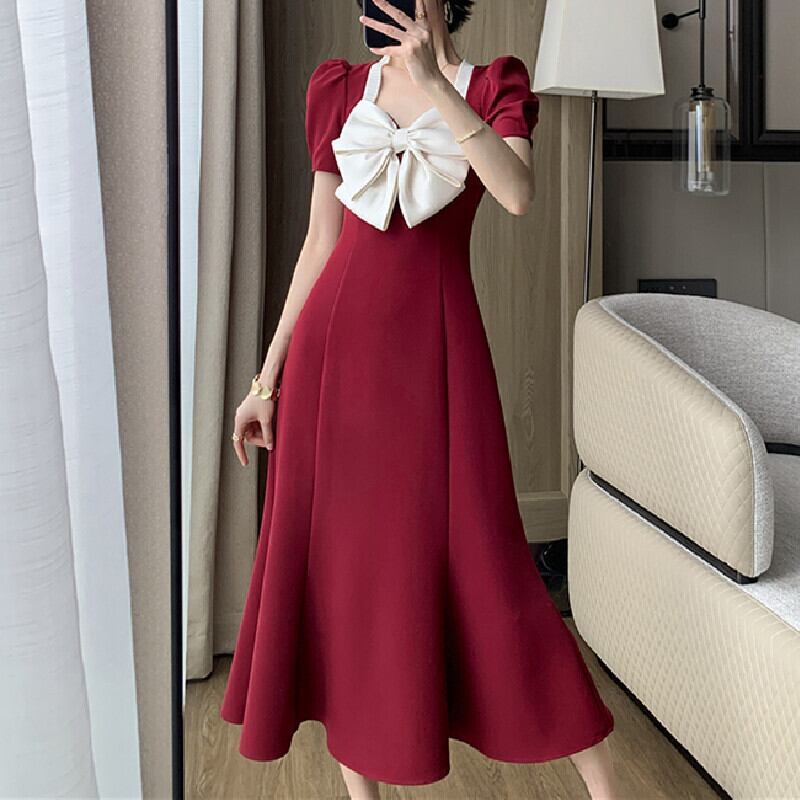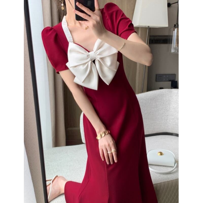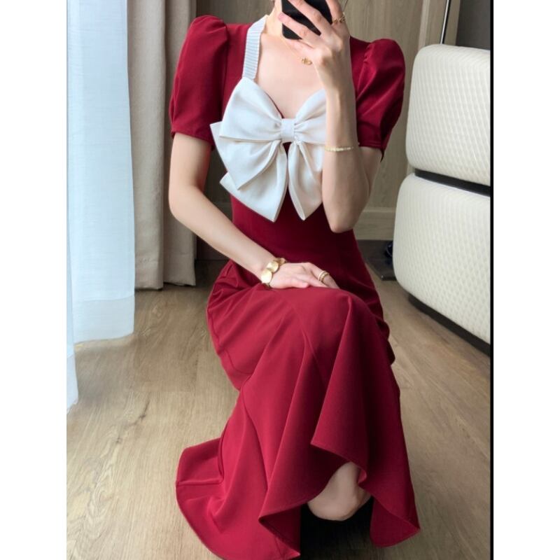 【森森家シリーズ】ワンピース パーティー 蝶結び 大きいサイズ フィッシュテール ワインレッド M L XL 2XL