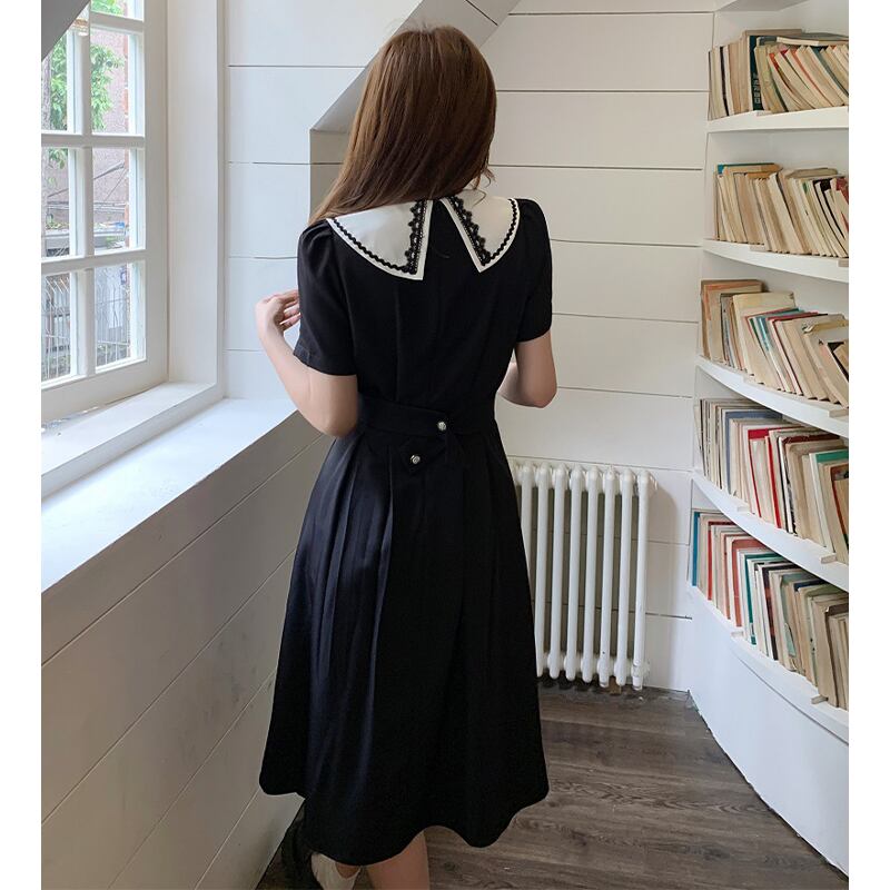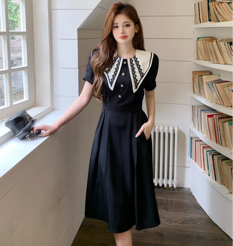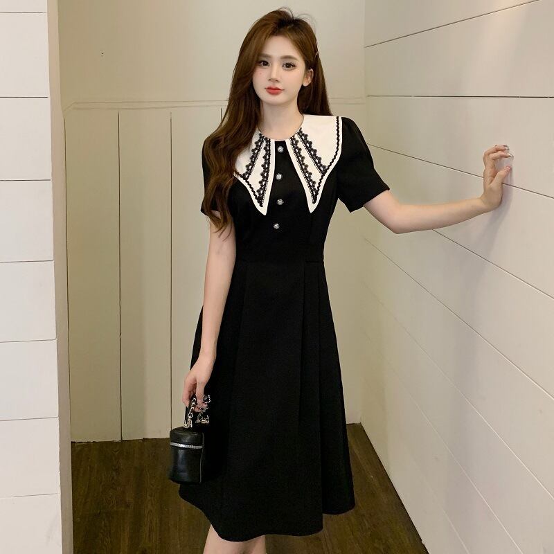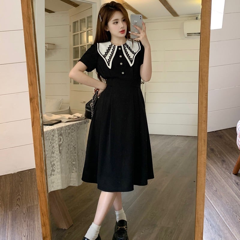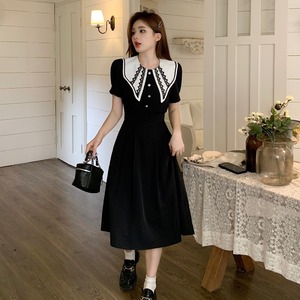 ワンピース OL/通勤 Aライン 折り襟 大きいサイズ ブラック M L XL 2XL 3XL 4XL