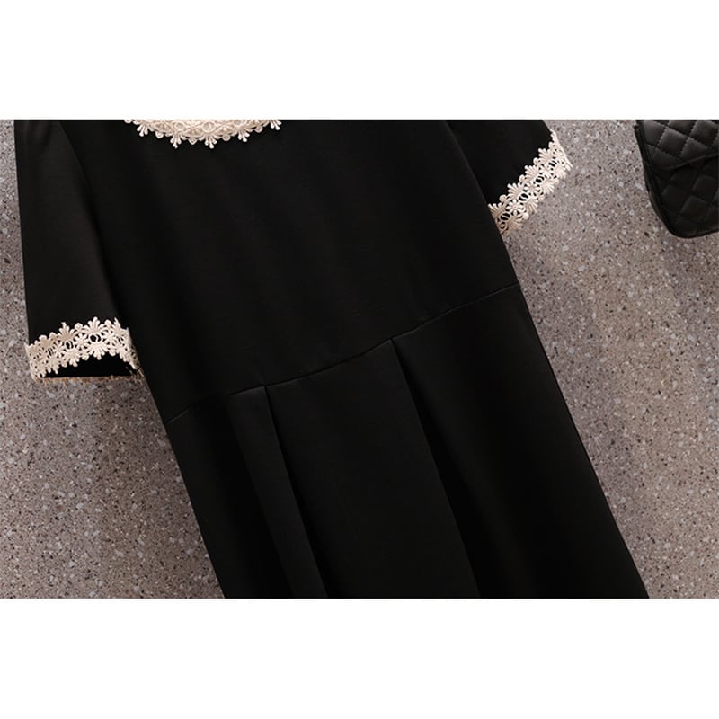 【YOYOシリーズ】ワンピース OL/通勤 ラウンドネック Aライン ロング丈&シュート丈 大きいサイズ ブラック M L XL 2XL 3XL 4XL
