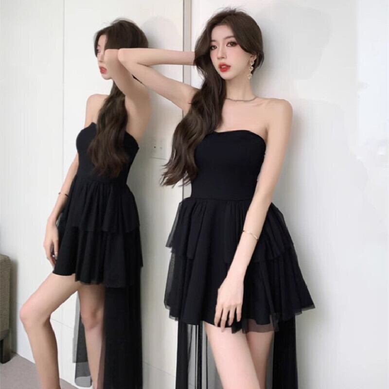 【CHERRYシリーズ】ワンピース Aライン 無地 黒 デザイン感 パーティー ブラック S M L