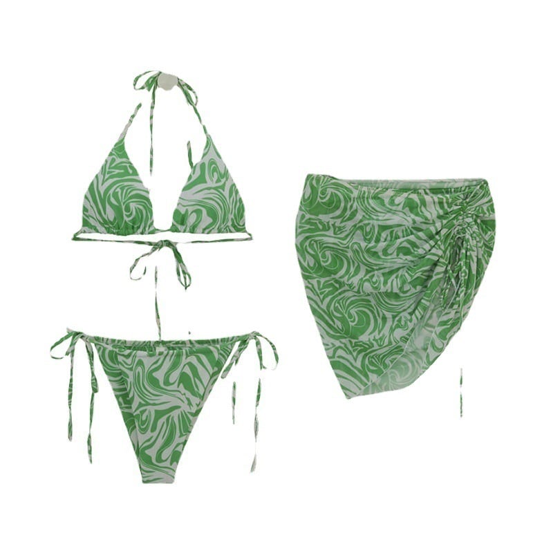 水着 ビキニ 3点セット 配色 グリーン+ホワイト M L XL