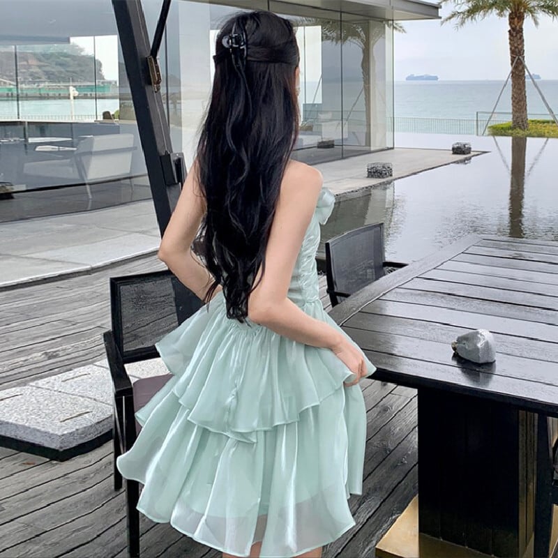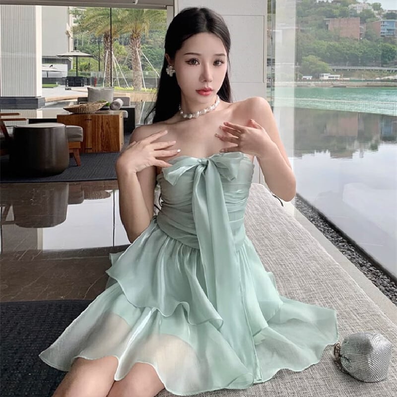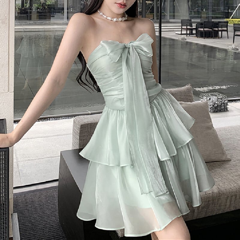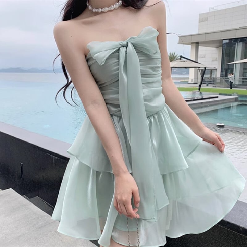 【SummerVacationシリーズ】ワンピース リボン Aライン パーティー ライトグリーン S M L