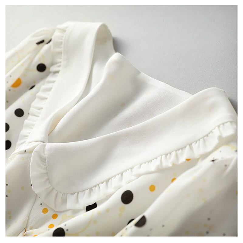 ワンピース OL/通勤 シフォン Vネック ドット柄 Aライン ルーズ 大きいサイズ ベージュ M L XL 2XL