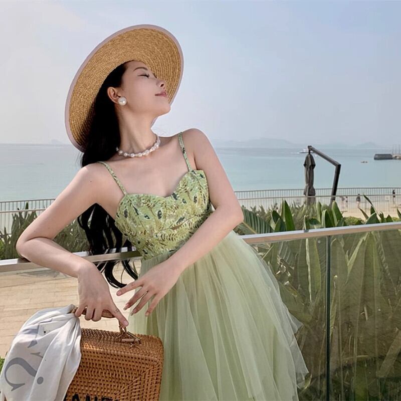 【SummerVacationシリーズ】吊りワンピース 緑 スウィート 休日 旅行 グリーン S M L XL