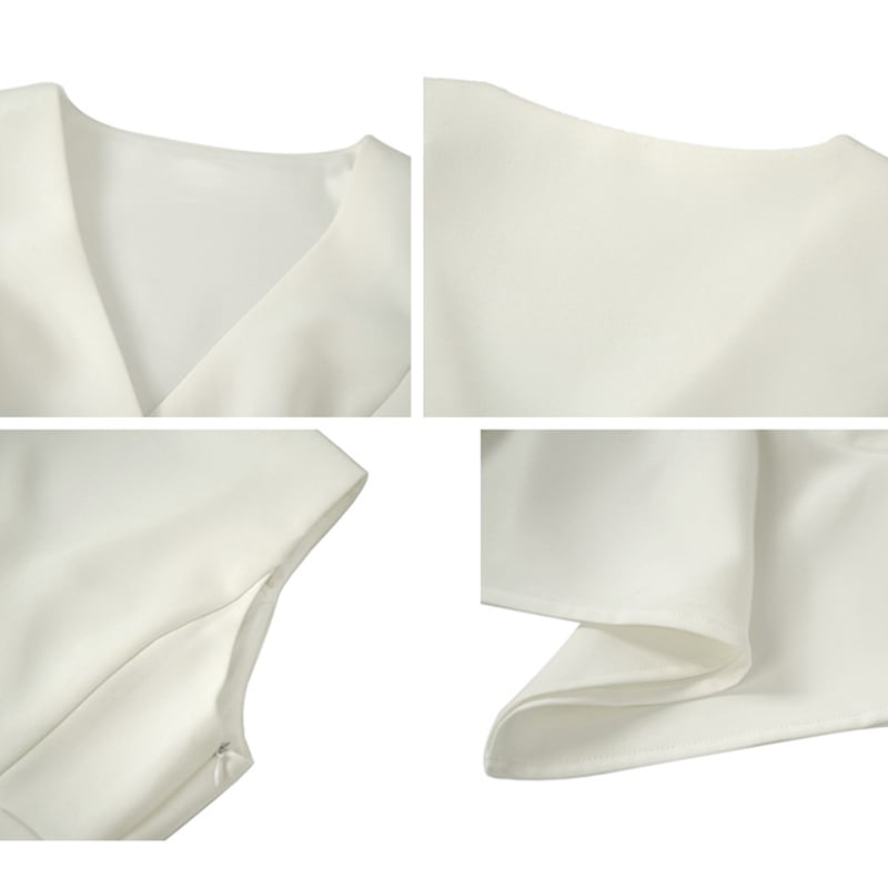 【夕暮薔薇シリーズ】トップス エレガント Vネック ノースリーブ パプラム ホワイト S M L XL