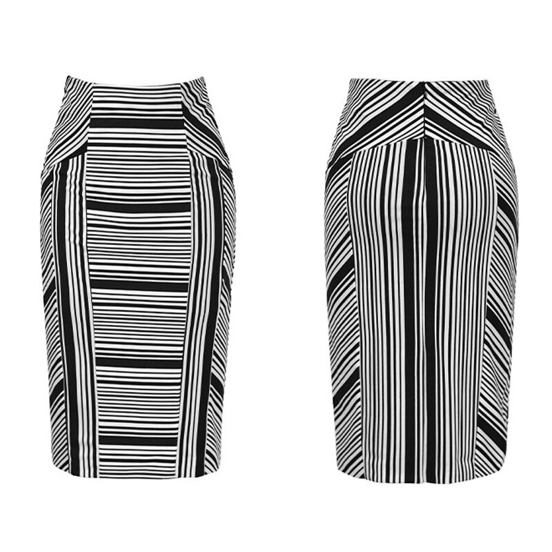 【夕暮薔薇シリーズ】ボトムス スカートハイウエスト ビジネス 白黒ストライプ柄 S M L XL