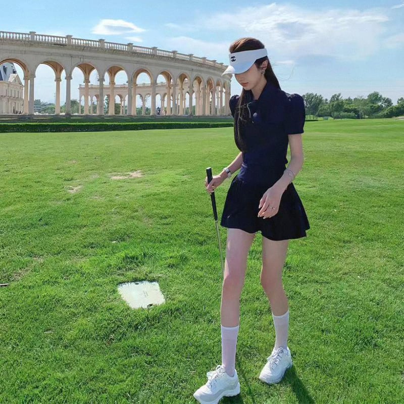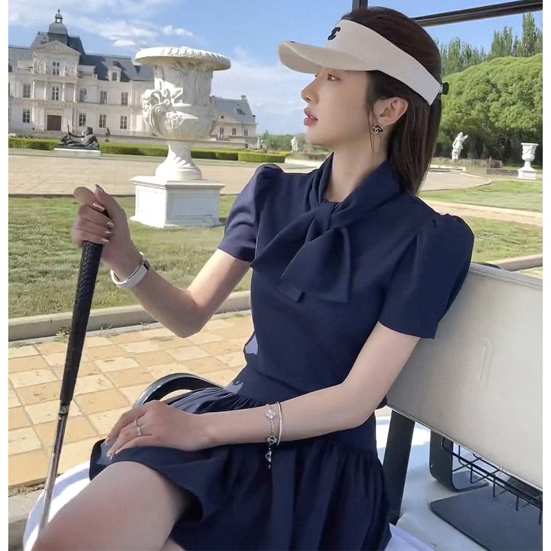 セットアップ スウィート 気質UP ボウタイネック トップス+スカート ネイビー S M