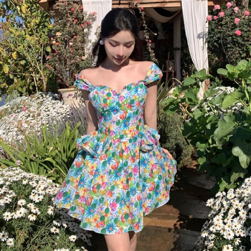 【SummerVacationシリーズ】ワンピース Aライン カラフル パーティー 花柄 S M L