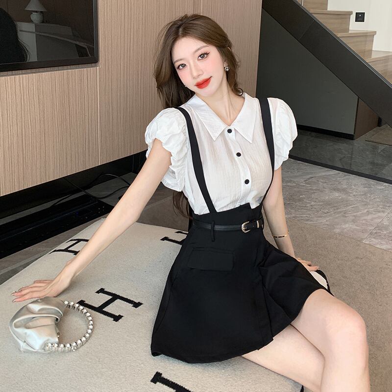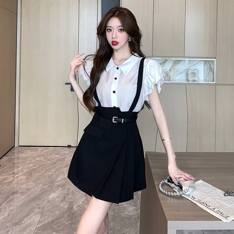 セットアップ 目を奪われる OL/通勤 不規則 韓国系 トップス+スカート ブラック+ホワイト S M L XL