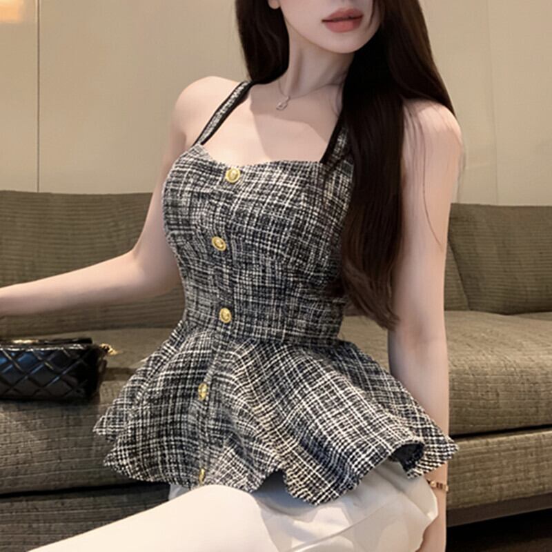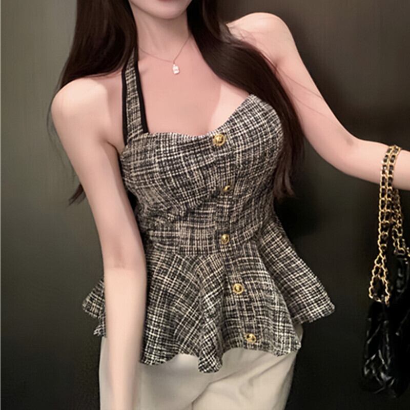 トップス キャミソール セクシー チェック柄 エレガント S M L