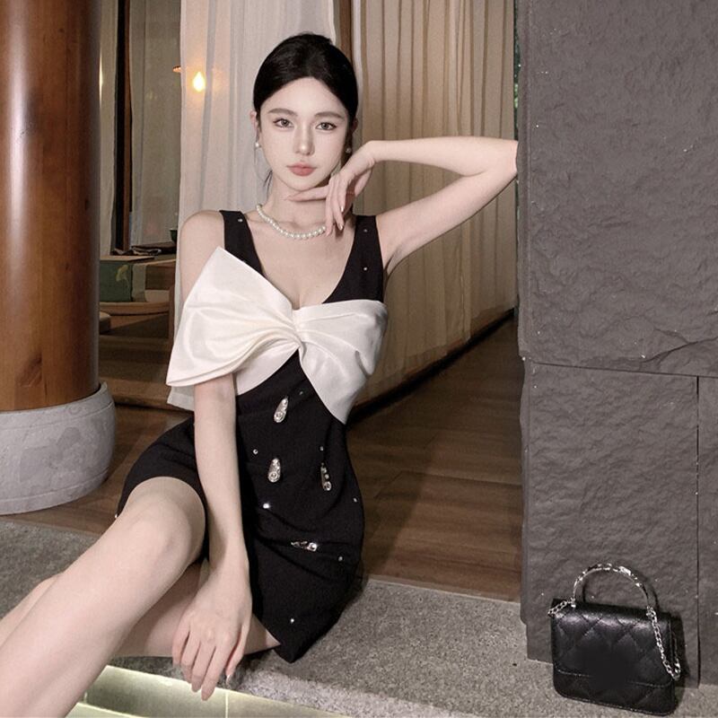 ワンピース パーティー 3Dフラワー ラインストーン ブラック S M L
