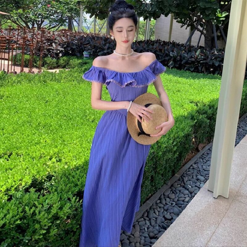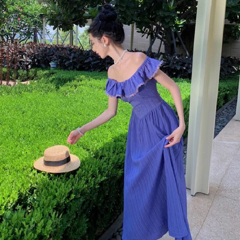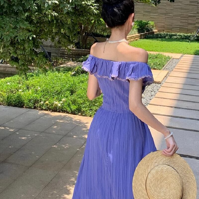 【SummerVacationシリーズ】ワンピース ボートネックデザイン ペプラム 無地 レトロ S M L