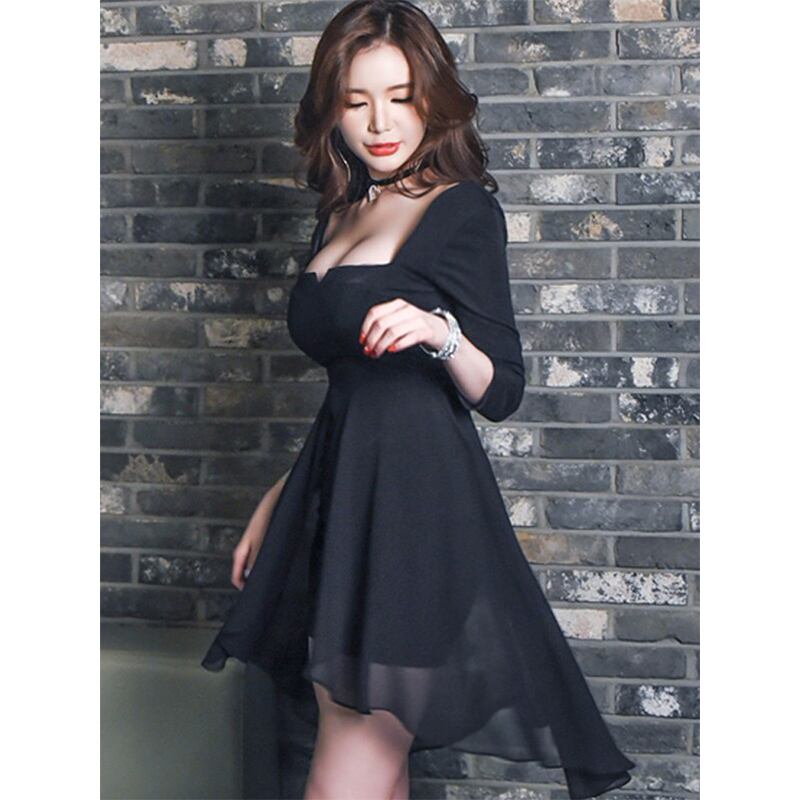 【Fan Styleシリーズ】ワンピース セクシー Aライン スクエアネック ブラック 大きいサイズ L XL 2XL 3XL 4XL