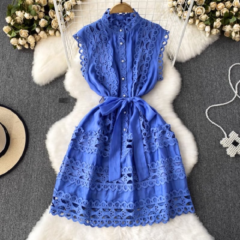 ワンピース 3色展開 大きいサイズ レース ノースリーブ ブルー ブラック ホワイト M L XL 2XL